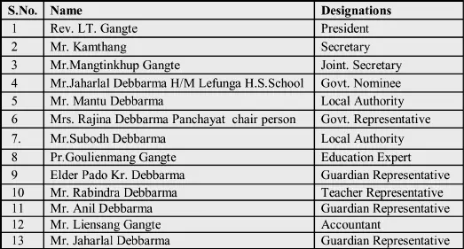 School Managing Committee, 2014-16